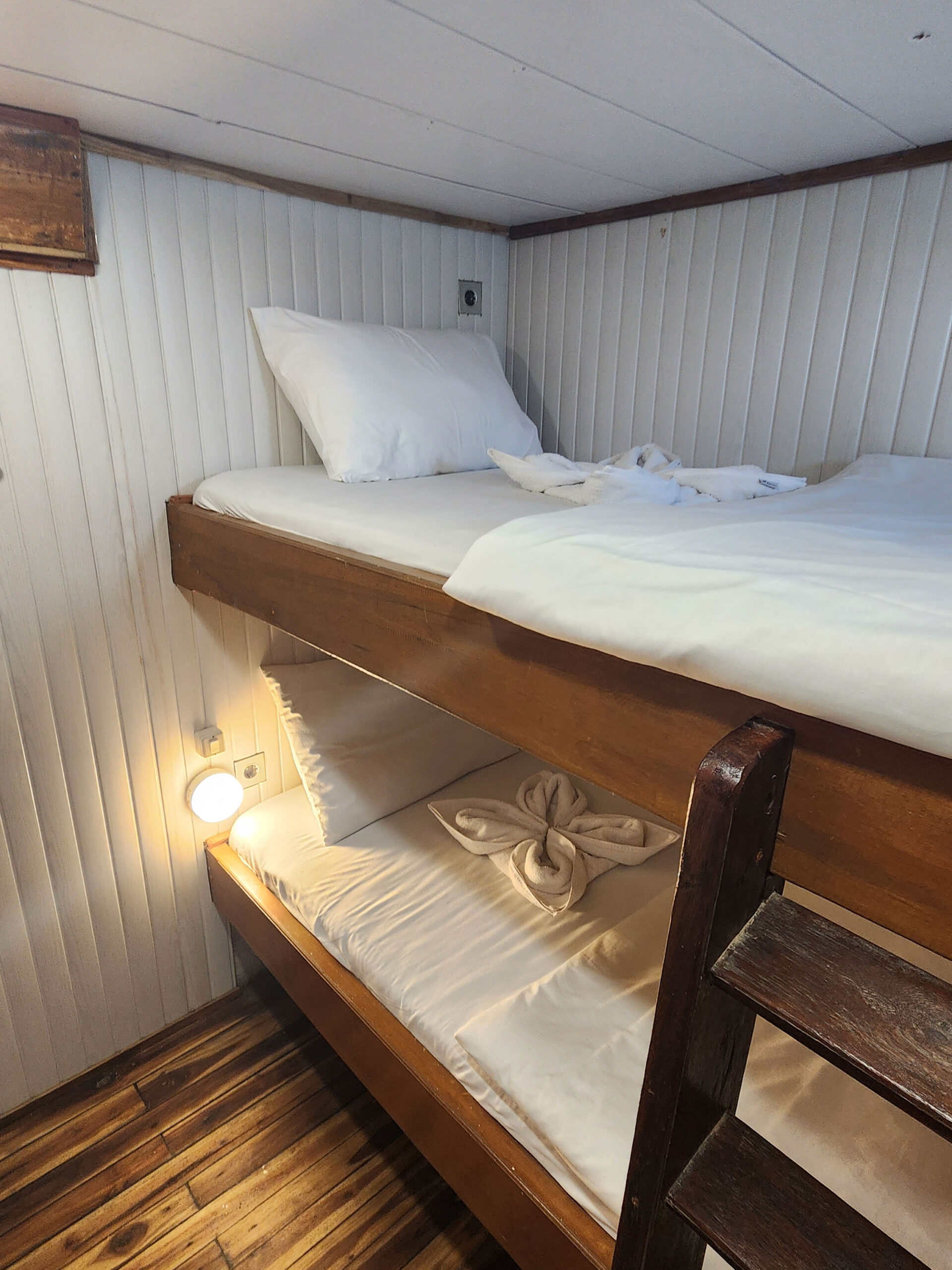 Cabins And spaces | 3 cabin with Double Bed, 1 cabin with bunk bed & All cabins have private bathroom |